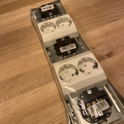 Selger 2 stk Dobbel stikkontakt med jordklemme og barnevern i farge aluminium