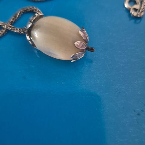 Med et elegant slankt slangekjede, sølvperler og et hjerteformet krystall anheng med en blå farge som fører oss til den kypriotiske kysten, er dette et smykke som speiler kypriotisk estetikk, kultur og natur.