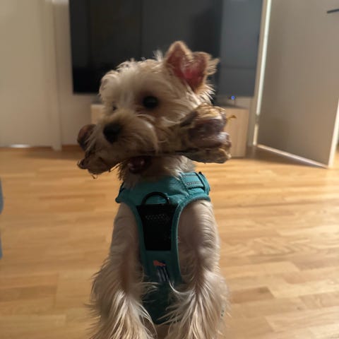 Hun har patella luxasjon og må holdes i god fysisk form for å stabilisere leddene. Ta kontakt for mere informasjon. NKK reg, helsesjekket og vaksinert.