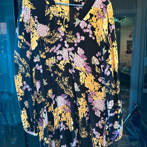byTiMo kjole i størrelse S. Laget av 100% viskose. Litt revnet ved glidelås helt på toppen på siden (som jeg nå har sydd, se bildet), derfor selges den billig.