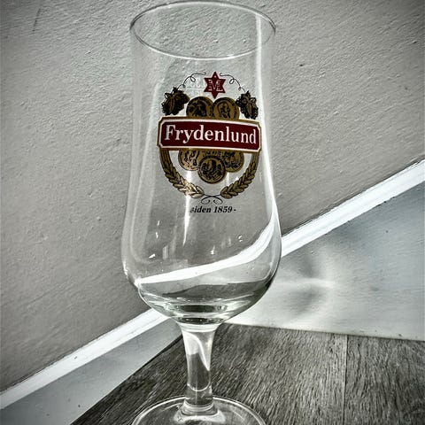 6 stk Frydenlunds ølglass, høyde 18 cm, diameter oppe 5,5 cm. Feilfrie. Kr 250 for 6. (Har noe flere .)