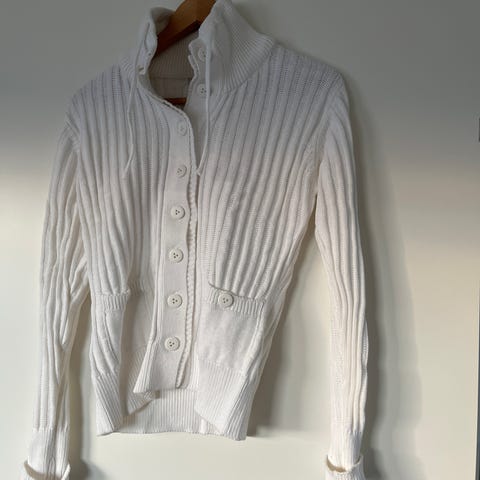 Haust Genser/Cardigan i blå farge, størrelse 36. 79% bomull. Cardiganen har knapper fora. Passer til hverdagsbruk og kan kombineres med ulike antrekk.