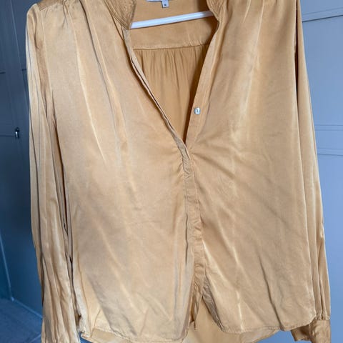 Nydelig lyse rosa silketopp som har en super fasong som legger seg veldig pent i halsen, litt lflaggermus ermer som gjør den tøff på til både bukser og skjørt .brystmål 65 x 2, nederst 60 x 2.