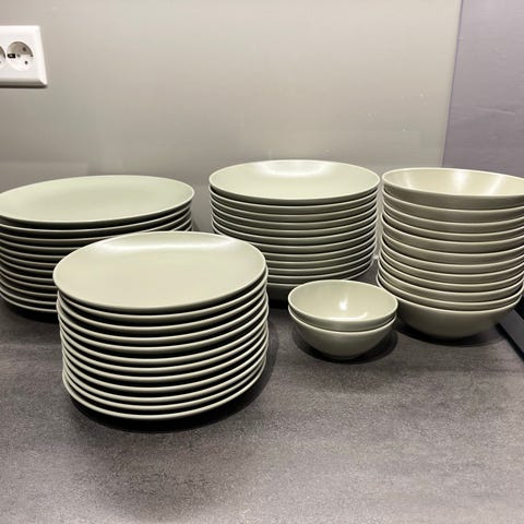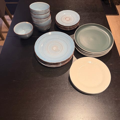 Selger et pent brukt servise fra IKEA, slått et hakk i 1 asjett(se bilde) men ellers i god stand. Settet består av:
