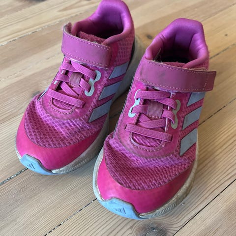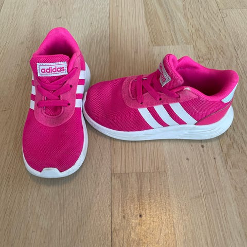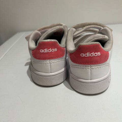 Adidas barnesko for jenter i størrelse 25. Skoene er rosa med hvite såler og har borrelås for enkel justering. Materialet består av tekstil og syntetiske materialer. Egnet for daglig bruk.