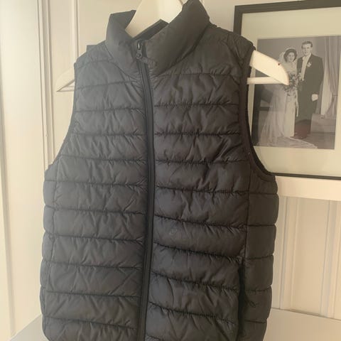 Lindex Kids vattert vest i grønn farge, størrelse 134 (passer barn 8-10 år). Vesten er vannavstøtende og designet for unisex bruk. Materialet er laget for å gi varme og komfort ved kjøligere værforhold.
