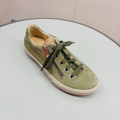 Skoene har grønne lisser og gummisåle, designet for casual bruk 🩷