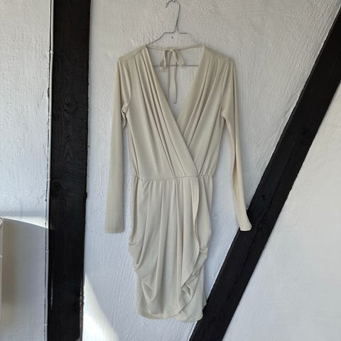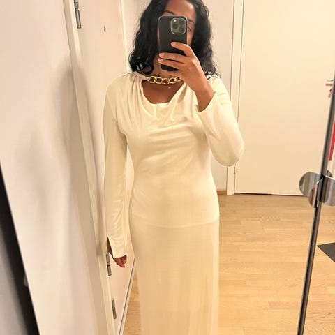 & Other Stories hvit jumpsuit i størrelse S for kvinner. Laget av elastisk materiale med rund hals og utskjæring foran. Langermet design med tettsittende passform.
