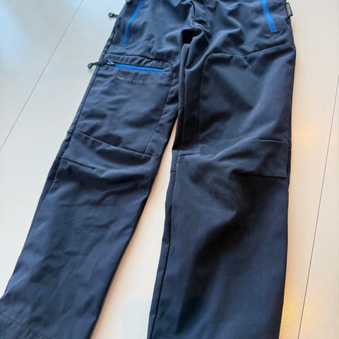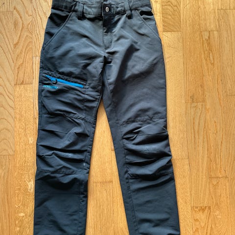 Norheim turbukse i svart farge, størrelse 8 år, unisex modell. Laget for barn med funksjonelle detaljer som glidelåslomme og forsterkede knær. Passer til utendørsaktiviteter og hverdagsbruk. Buksa er sort - kan se grå ut på bildene.