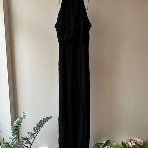 Kjolen har tynne stropper og en elastisk midje. Materialet er lett og delikat, egnet for formelle anledninger. 🌸
