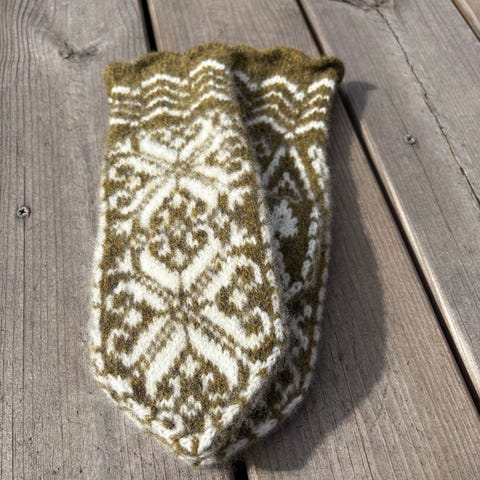 Varme gode votter i ull med fint mønster.