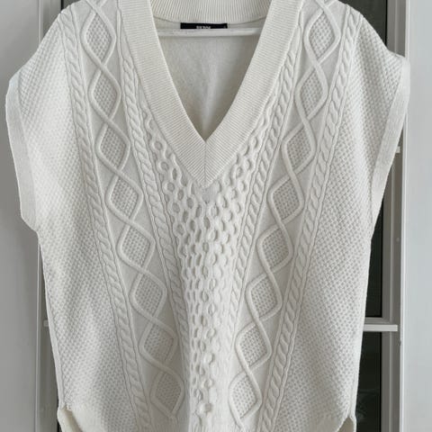 Second Female Beige Vest i størrelse S. Laget i mykt materiale med glidelås foran og brystlomme. Veldig kul vest, Noe oversized. Kun brukt en gang og er som ny.