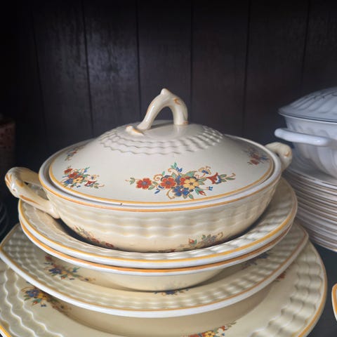 To engelske småfat/skåler. De er 11 cm brede, 8 cm høye og 2 cm dype.