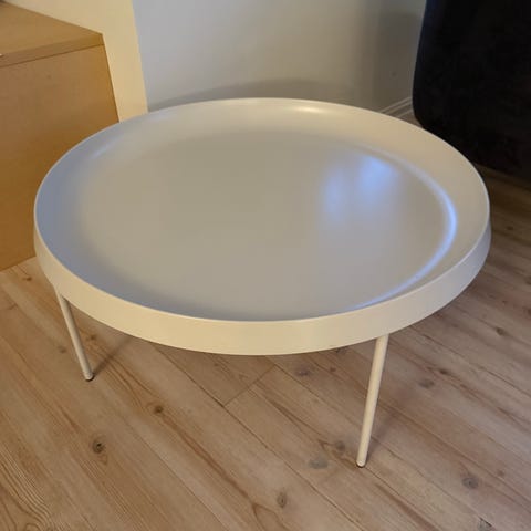 Rundt sidebord av merket Swedese selges. Det har noen få ubetydelige bruksmerker som kun ses i fullt lys. Brettet kan tas av stativet, noe som gir bordet flere funksjoner.