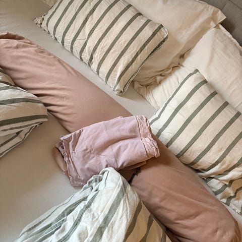 Følger med alt som var med fra da jeg kjøpte den, bag, sidestykker, pute og rosa trekk 🌸