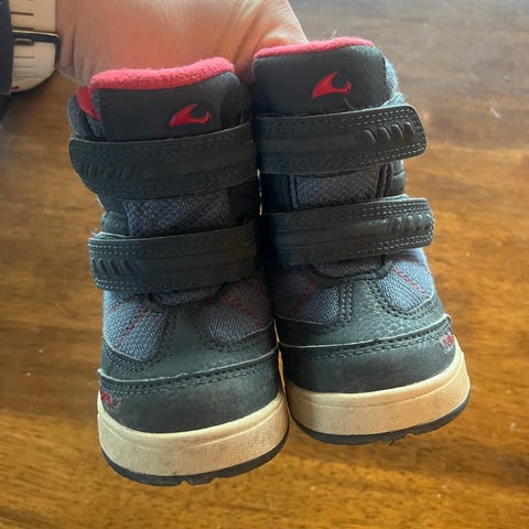 Viking barnesko i størrelse 24. Skoene er svarte med borrelås for enkel justering. Yttersålen har godt grep, og innsiden er foret for komfort og varme. Perfekt til norsk høst-og vintervær ❄️🌨️
