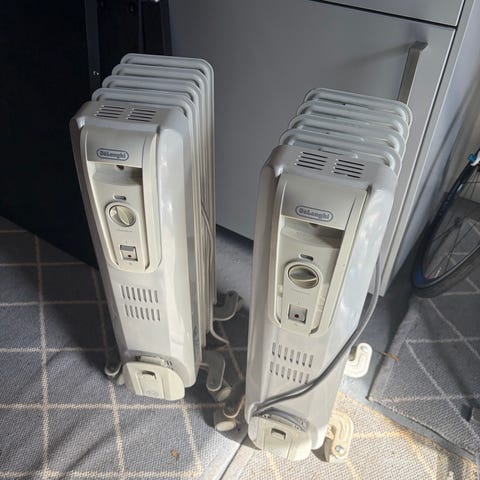 DeLonghi radiator oljeovn i hvit farge med flere varmeinnstillinger og justerbar termostat. Designet for effektiv oppvarming av rom. Utstyrt med hjul for enkel flytting og brukervennlige kontroller.