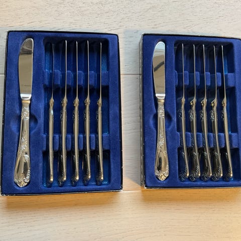 Fiskebestikk til seks i rustfritt stål. Ubrukt