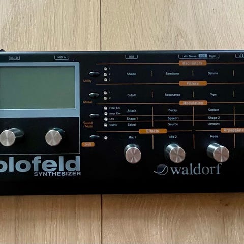 Waldorf Blofeld Synthesizer modul selges. VA, Wavetable, FM, effekter, multitimbralitet og masse mod-muligheter i en liten eske. Godt brukt, men fungerer som den skal. Ikke lagging på knottene, og heller ikke svak output, som noen enheter av denne har slitt med. Har SL-sample ekspansjonen.