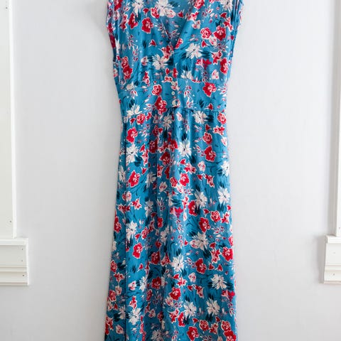 Zara blå jumpsuit i mellomblå, størrelse M. Jumpsuiten har lange ermer, belte i livet og er laget av et materiale som gir en lett og komfortabel passform men med elegant snitt.