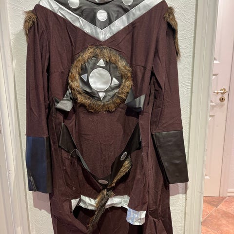 Selger 3 stk. kostymer samlet i myk bomullsflanell. De er hjemmesydd med trukne knapper. Kjole og bukse til voksne og en topp i noe mindre størrelse.