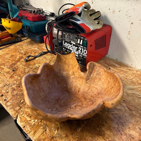 Skålen har en organisk form og fremhever treets naturlige tekstur og farge. Passer til dekorasjon eller oppbevaring av små gjenstander.