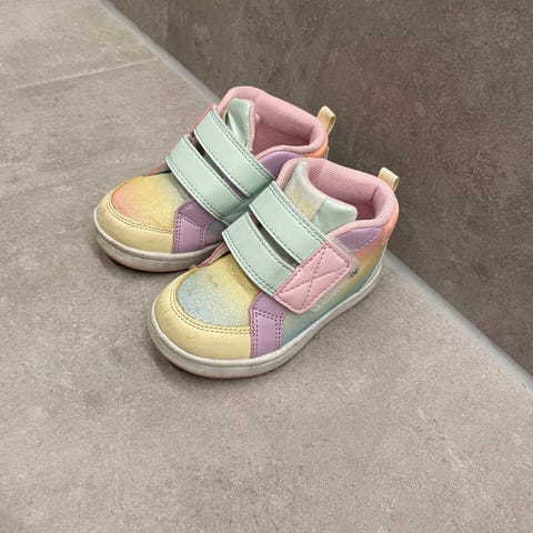 Lett fôret. Har rosa-lilla lys i sålene.