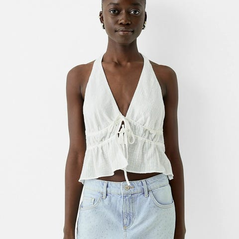 Veldig fin one-shoulder topp🤍Perfekt til både sommer og mange andre anledninger. Den har en nydelig passform med en stram midje i livet, og en fin sløyfe på skulderen.