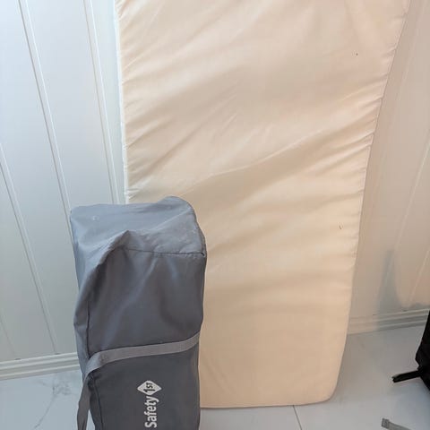 Veldig lett og enkel reiseseng. Brukt, men masse bruk igjen. Selve madrassen har løsnet litt i en søm - se bilde, men dette har ingenting å si for bruken, siden man har laken rundt. Et bittelite hull på kanten på senga - se bilde, men heller ingenting å si for bruken.