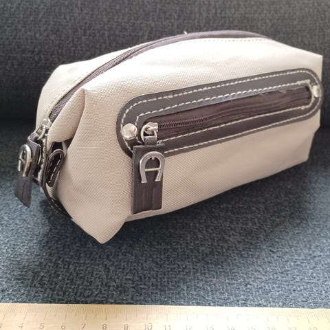 Sensai make up bag i beige. kan brukes som clutch. Imitasjon av suide leather.