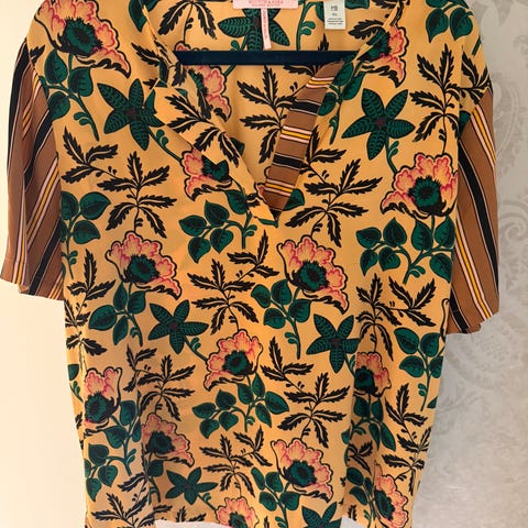 En flott rød/oransje bluse med vakre volanger og behagelig strikk nederst på erme, fra Scotch & Soda.