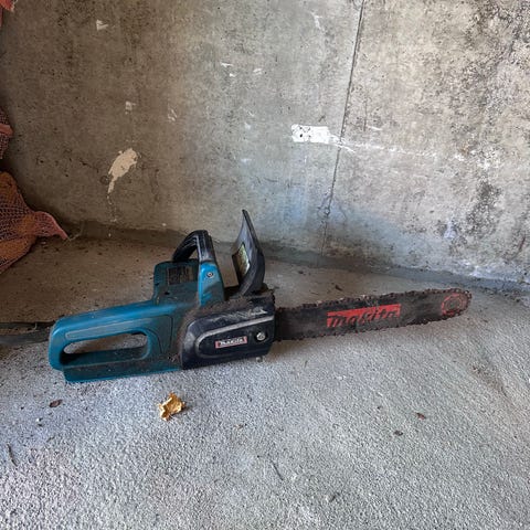 Ny Makita 40v xgt kjedesag da jeg har en fra før, dette er proffmodellen til Makita med skikkelig kjedestramming. (Uc011g)