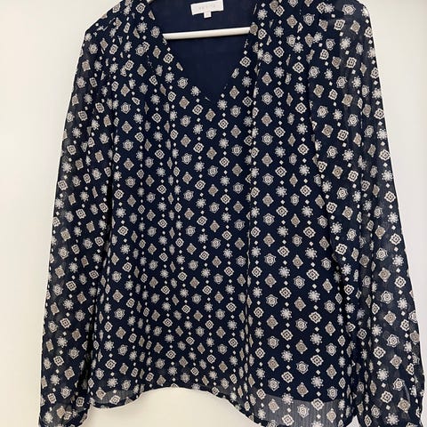 Va Vite Bluse i blått og hvit mønster. Tynn bluse som ikke krøller