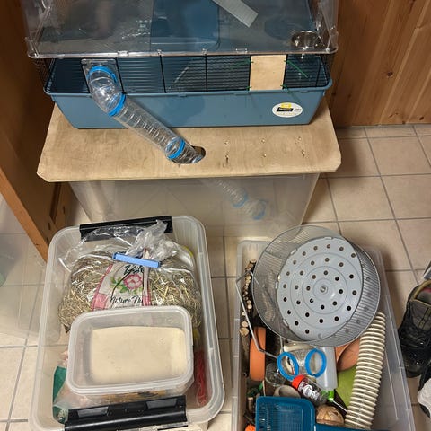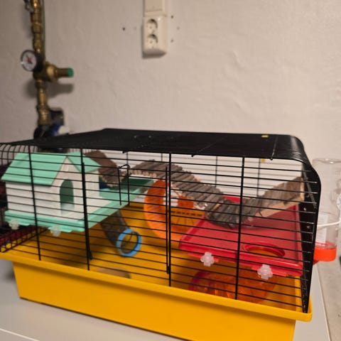 Selger pakke med bur/utstyr til hamster