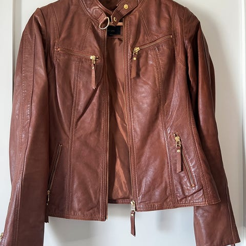 BTF CPH Biker Jacket Suede Camel. Utrolig kul skinn jakke fra Denasia og merket deres BTF CPH. Kun brukt en gang et parr timer, og fremstår som ny! Ingen bruksmerker. Kjøpt ny for 4000kr, str 40 (M), men kan fint passe en S også! Super fin farge som passer perfekt til høsten! pris kan diskuteres!