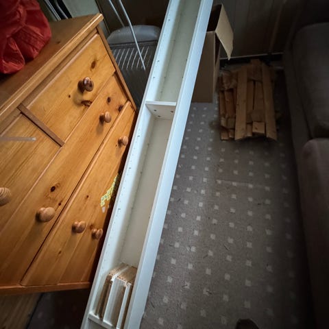 Vegghengt cd hylle selges rimelig. Furu, malt med matthvitmaling.