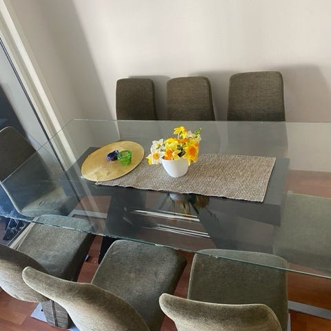 Spisebord og glasskap selges