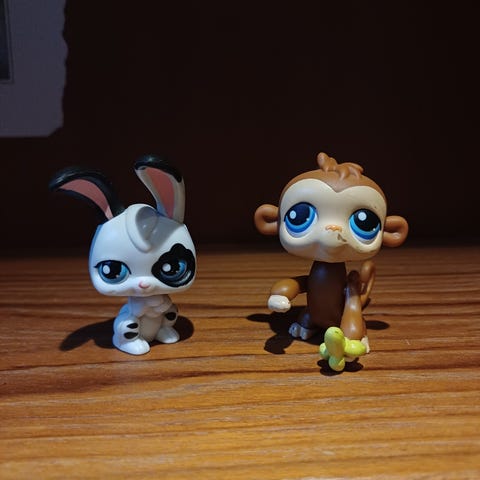 jeg selger kanin #2485, rådyr #2486 og komondor/mop hund #2487 fra "sleepy tails party" settet. det eneste jeg har av gjenstandene fra det originale settet er popcorn skålen.