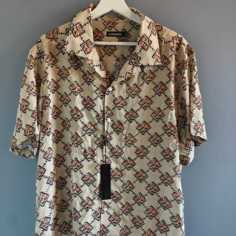 Selger en pent brukt skjorte fra britiske Jigsaw. Stoffet er fra italienske Canclini, noe av det flotteste du får på kroppen. Størrelse large.
