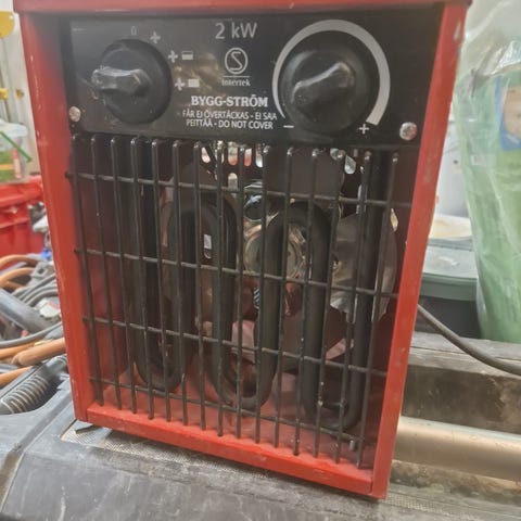 Anslut Fan Heater med modellnummer 411-123. Elektrisk vifteovn med effekt på 2000 watt, 230 volt og 50 Hz. Farge: rød. Materiale: metall. Designet for oppvarming av rom. Produktet har en vifte for jevn varmefordeling.
