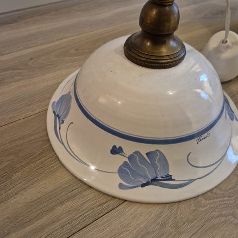 Denne flotta taklampa fra Svenska Paradis verkstan på Öland. Den er handlaga keramikk dejad lampa