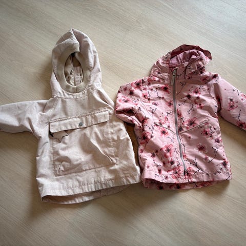 En tynn lett foret jakke fra H&M, og en fleecejakke fra Polarn O. Pyret Fleecejakka er litt nuppete og godt brukt, så selges billig. Begge er hele og uten andre mangler/hull.