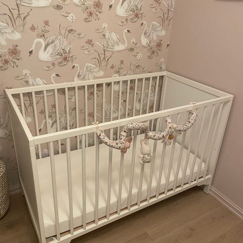 JLY Sprinkelseng i hvit. Lite brukt av ett barn, da han ikke likte å sove i sprinkelseng🙃 Noen mindre gnagemerker på sprinkelsengen. Kun oppbevart innendørs og tørt. Et svært godt kjøp!