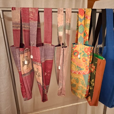 Alle veskene er handmade with love – og ingen er helt like. Et unikt og miljøvennlig alternativ til plastposer.