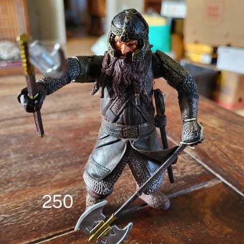 Aldri vært tatt ut av plasten de er i og heftet har også ligget i plast siden det var nytt. Kjøpt når Ringenes brorskap kom ut på film.