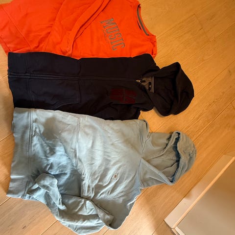 Begge bukser nesten ikke brukt. Topper helt ny. Genser er lang modell pent brukt. Bukser og topper har kjøpt på kidsbrandstore.