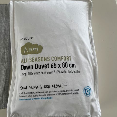 - En stk. baby helårsdyne dundyne (Alvøy, Nordun) 80 x 100 cm.