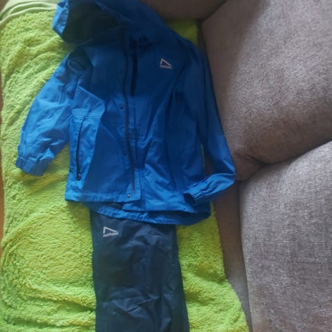 Pent brukt regntøy fra Nordheim. Bukse og jakke med lett for og glidelås.