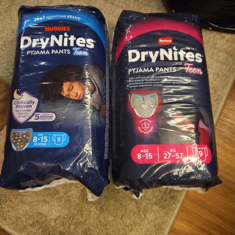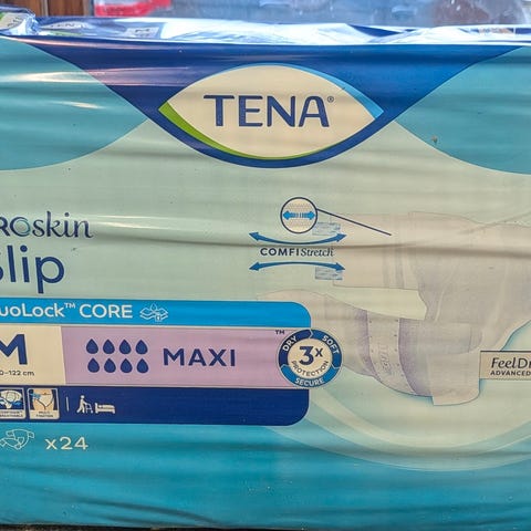 Uåpnede bleier for voksne og eldre, helt nye, 50 kr per stykk