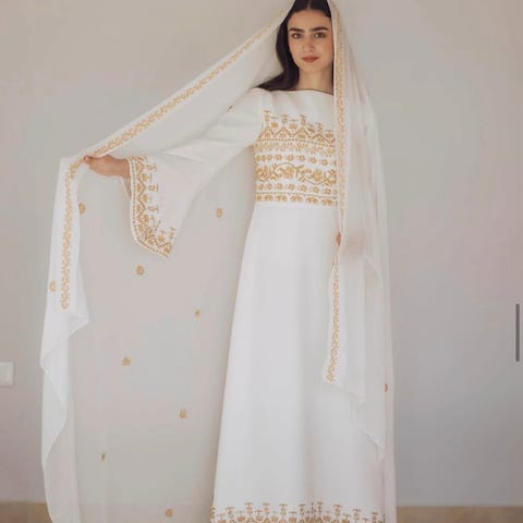 Kjolene er nye. De ble sydd til bryllupet, men kunne ikke delta. De er nye og aldri brukt. Målene er nedenfor. Jeg har også videoer av kjolene.